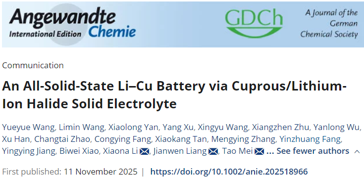 梅涛教授团队在全固态锂铜电池领域取得进展
