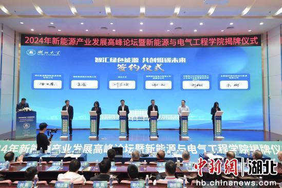 中新网湖北新闻11月15日电 (王金瑞 鲜文涛)2024年新能源产业发展高峰论坛暨bv伟德国际1946揭牌仪式11月15日举行。本次活动以“智汇绿色能源,共创低碳未来”为主题,来自中国科学院、华中科技大学、武汉大学等高校和科研院所的专家学者,东风集团、湖北能源集团、骆驼集团等企业的负责人齐聚沙湖琴园,共同聚焦新能源高质量发展路径,探索绿色低碳转型新模式。