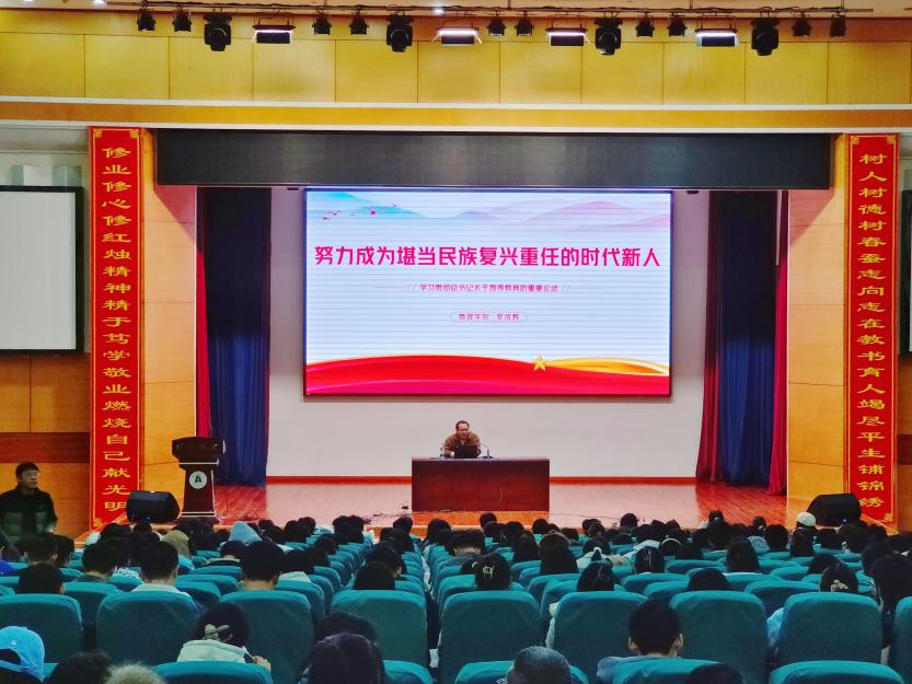 罗成辉老师以“习近平总书记关于教育的重要论述(习近平同志《论教育》和全国教育大会精神)”为题作报告,向同学们介绍了教育在强国建设、民族复兴进程中的基础性、先导性和全局性地位和作用,当下我们正处于进一步全面深化改革、推进中国式现代化的新征程中,应当深刻把握建设强大的思政引领力的重大意义,在思政教育中学有所获。