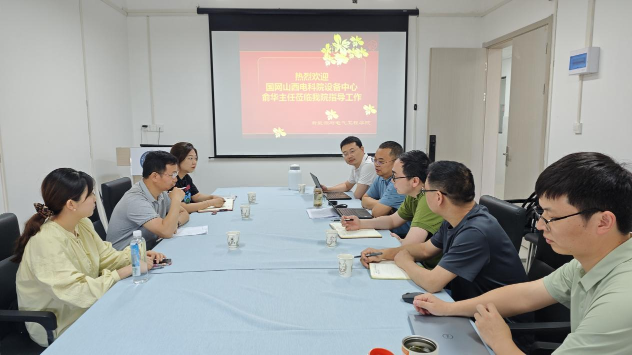 4月26日上午,国网山西省电力公司电力科学研究院设备中心主任俞华率技术专家团队一行3人莅临我院开展学术交流活动。双方围绕新型电力系统建设、新能源技术应用及科研合作等议题展开深入探讨,并达成多项合作共识。交流座谈会上邓鹤鸣副院长与梅涛副院长对国网山西电科院专家团的到来表示热烈欢迎,并介绍了我院在智能电网、新能源储能、电力系统优化等领域的科研进展与人才培养成果。他表示,希望以此次交流为契机,依托双方资源优势,在关键技术攻关、成果转化及产教融合方面形成协同创新机制。国网山西电科院俞华主任对学院的科研实力和学科特色给予高度评价。他介绍,国网山西电科院近年来聚焦“双碳”目标,在特高压输电、新能源消纳、电网智能化等领域取得多项突破,期待与我院在联合课题申报、实验资源共享及人才联合培养方面建立长效合作平台。