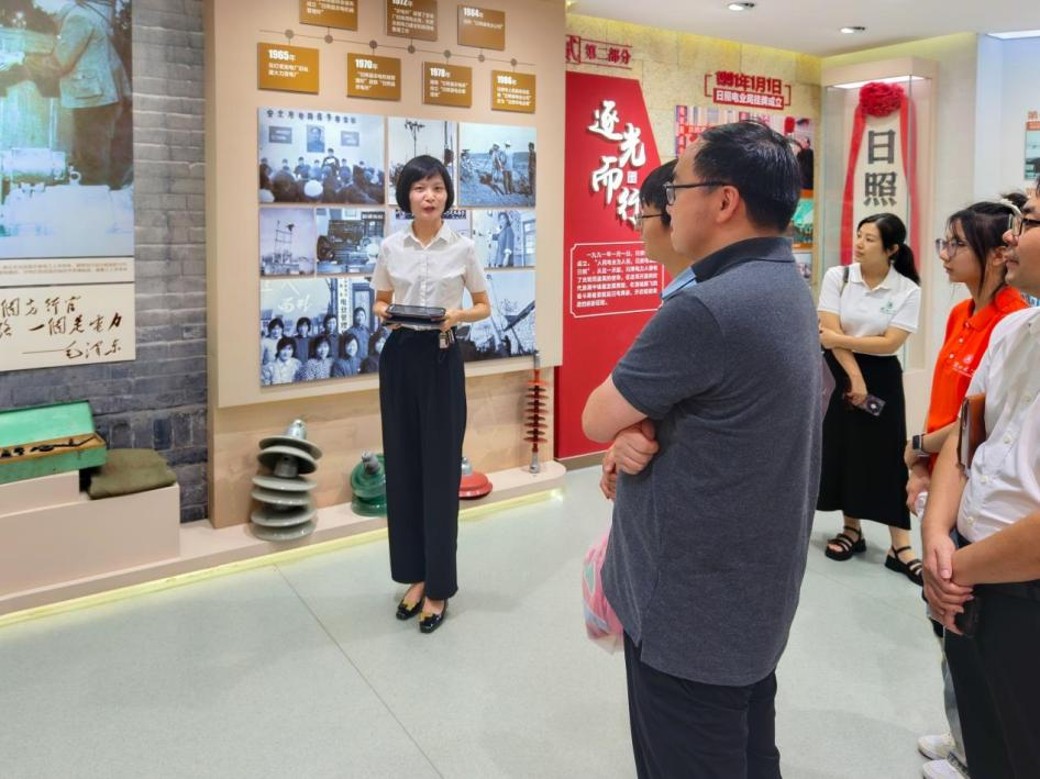 活动最后一站,师生一行对话企业发展史,走进日照供电公司史记馆。这座时光长廊,用泛黄的照片、珍贵的文件、早期的生产工具和详实的图文,生动再现了企业从扎根日照、艰苦创业到发展壮大的峥嵘岁月。大家驻足于记录着关键技术突破、重大发展节点和历代奋斗者身影的展品前,深刻感受到企业深厚的文化积淀、敢为人先的开拓精神以及在时代浪潮中砥砺前行的韧劲。