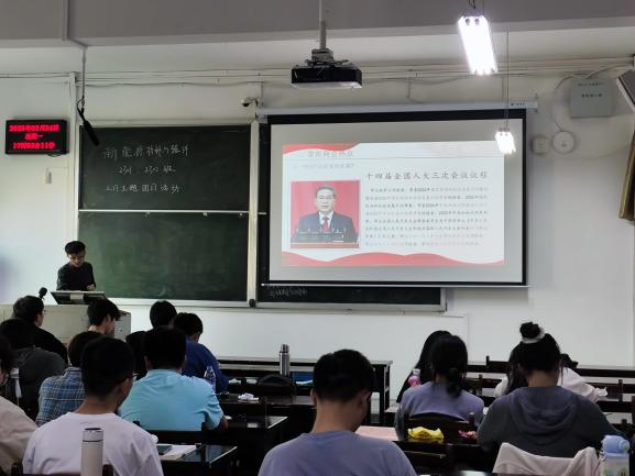 活动伊始,谢乐轩介绍了本次团日活动的主题,他从两会热点议题切入,带领青年团员深入学习两会精神。随后,他以青年团员的角度,对广大青年如何将个人成长融入国家战略提出建议,鼓励青年团员从“践行绿色使命”、“谱写西部赞歌”、“弘扬雷锋精神”三点出发,积极投身志愿服务,为社会发展贡献青年力量。