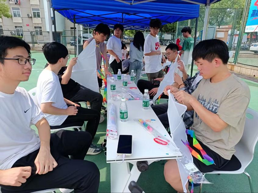活动伊始,同学们以个人形式积极参与风筝创作。活动现场气氛热烈,同学们手持画笔,在空白风筝上精心绘制,将对新能源的理解与热爱融入其中。在创作过程中,大家积极交流,分享对新能源的专业见解与设计灵感。风电叶片、太阳能电池板、绿色能源符号等专业元素被巧妙地呈现在风筝上,一个个充满创意与科研灵感的风筝在同学们的巧手下诞生。