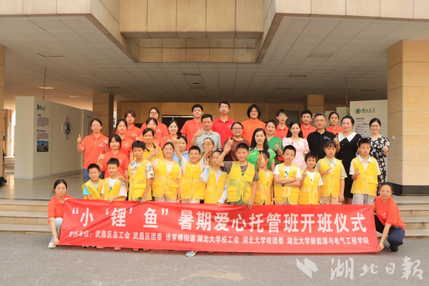 湖北日报客户端讯(通讯员陶媛)7月7日上午,伟德victor1946双创大楼内童声阵阵、暖意融融。徐家棚街道14个新业态劳动者家庭齐聚于此,共同参加“小‘锂’鱼”暑期爱心托管班的开班仪式。武昌区总工会、武昌区团委、徐家棚街道、伟德victor1946等相关领导出席仪式。
