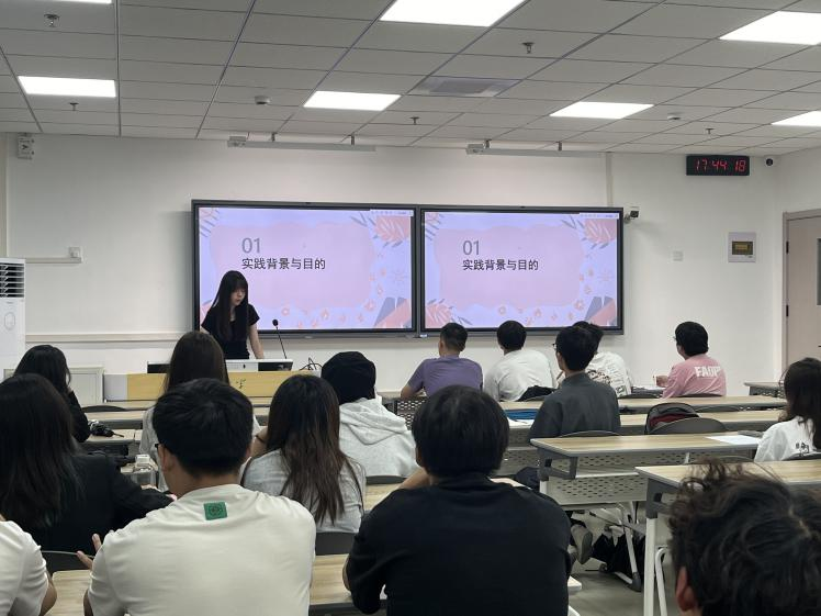 谢乐轩同学以“‘晶’益求精,青春同行”为主题,从实践背景、实践过程、实践成果、未来展望四方面展开论述,向同学们介绍了光伏回收产业的国家激励政策与科技型环保企业发展现状,以图文结合的方式呈现了团队“三下乡”的实践历程与访谈故事,最后得出构建硅基光伏组件一体化回收利用体系的“四个闭环”。